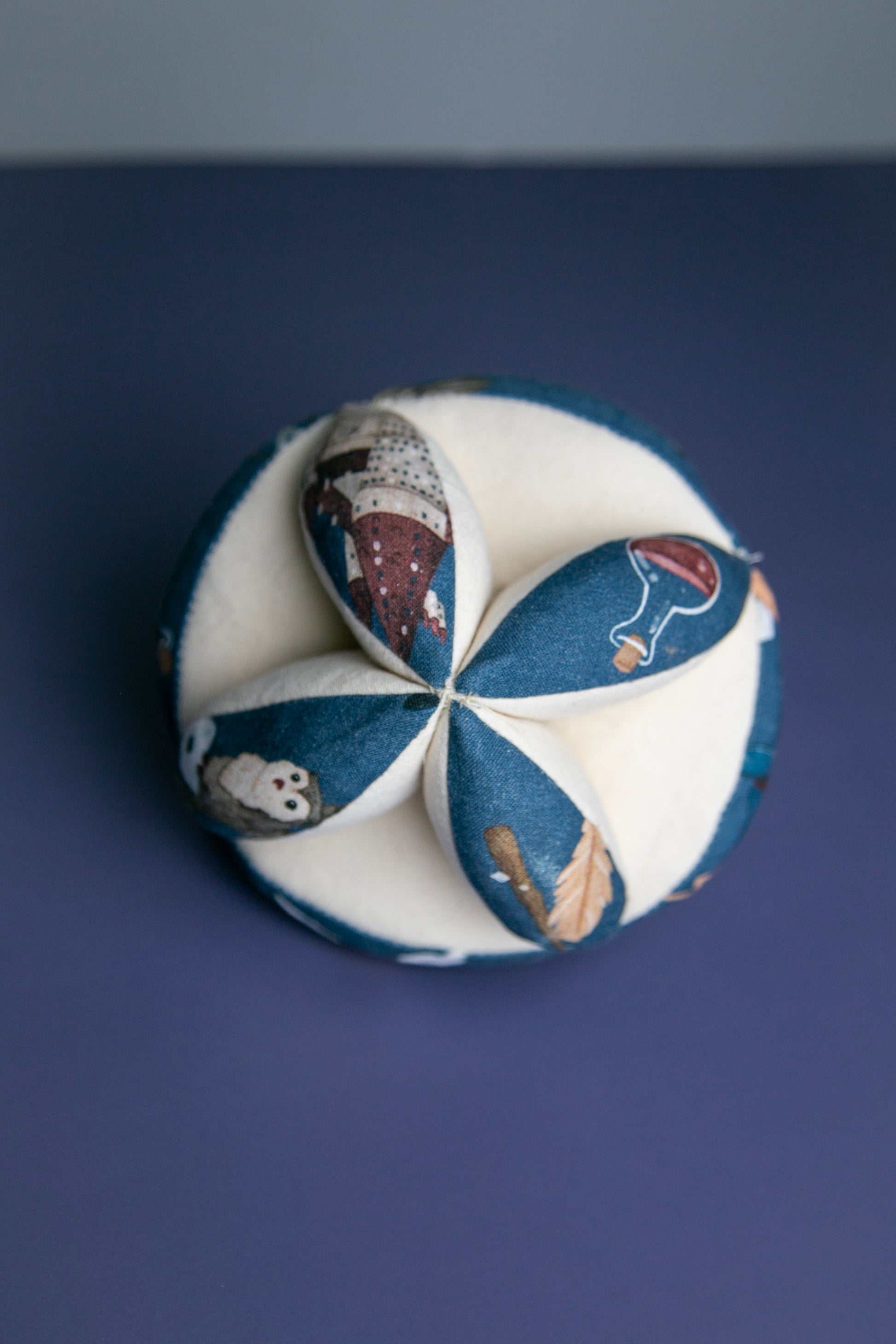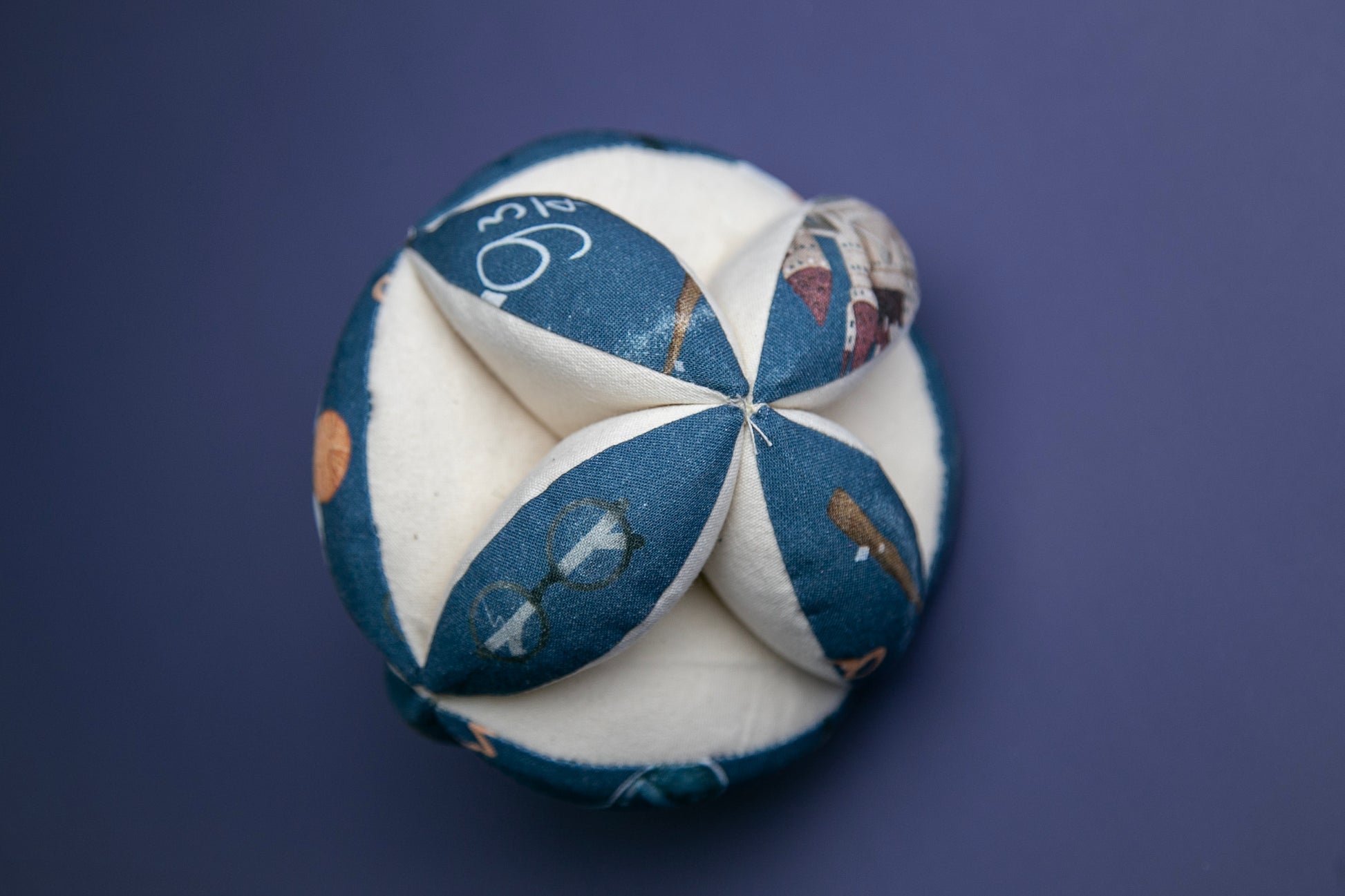 Cette balle de préhension est composée de 12 triangles soigneusement rembourrés avec de l'ouate de coton biologique.