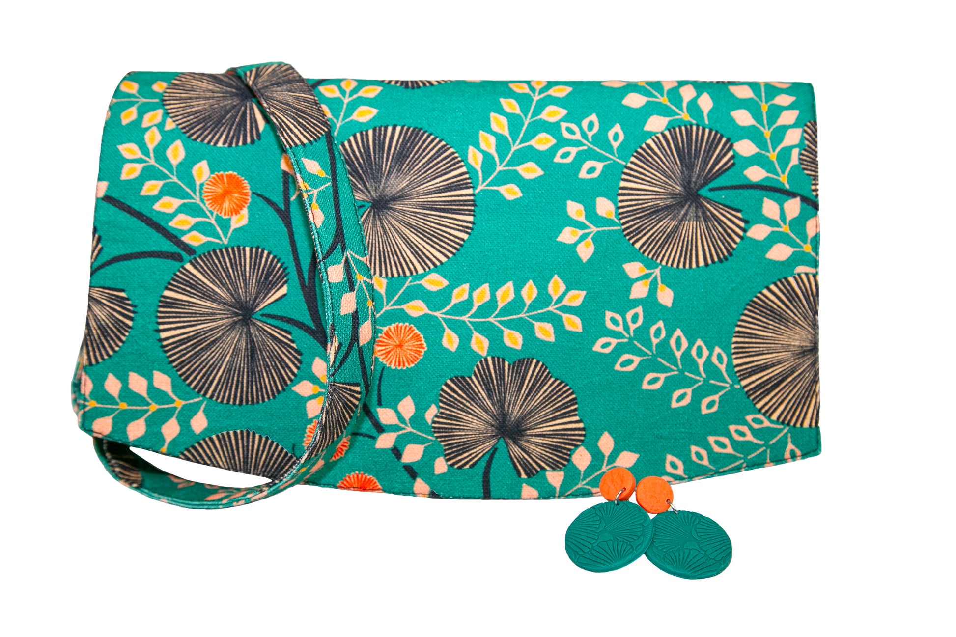 Boucles d'oreilles avec un imprimé des feuilles de l'arbre ginkgo biloba. Ces boucles s'associent parfaitement avec la pochette Ginkgo.