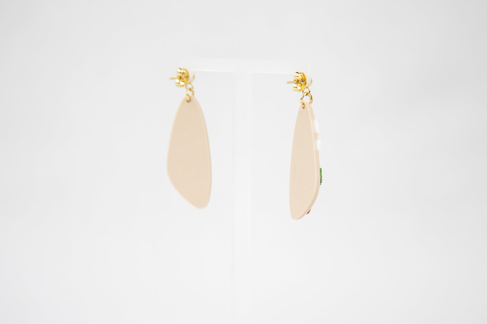 Boucles d'oreilles de forme géométrique, agrémentées de fleurs et coccinelles. Ajoutez de la chance à votre journée!