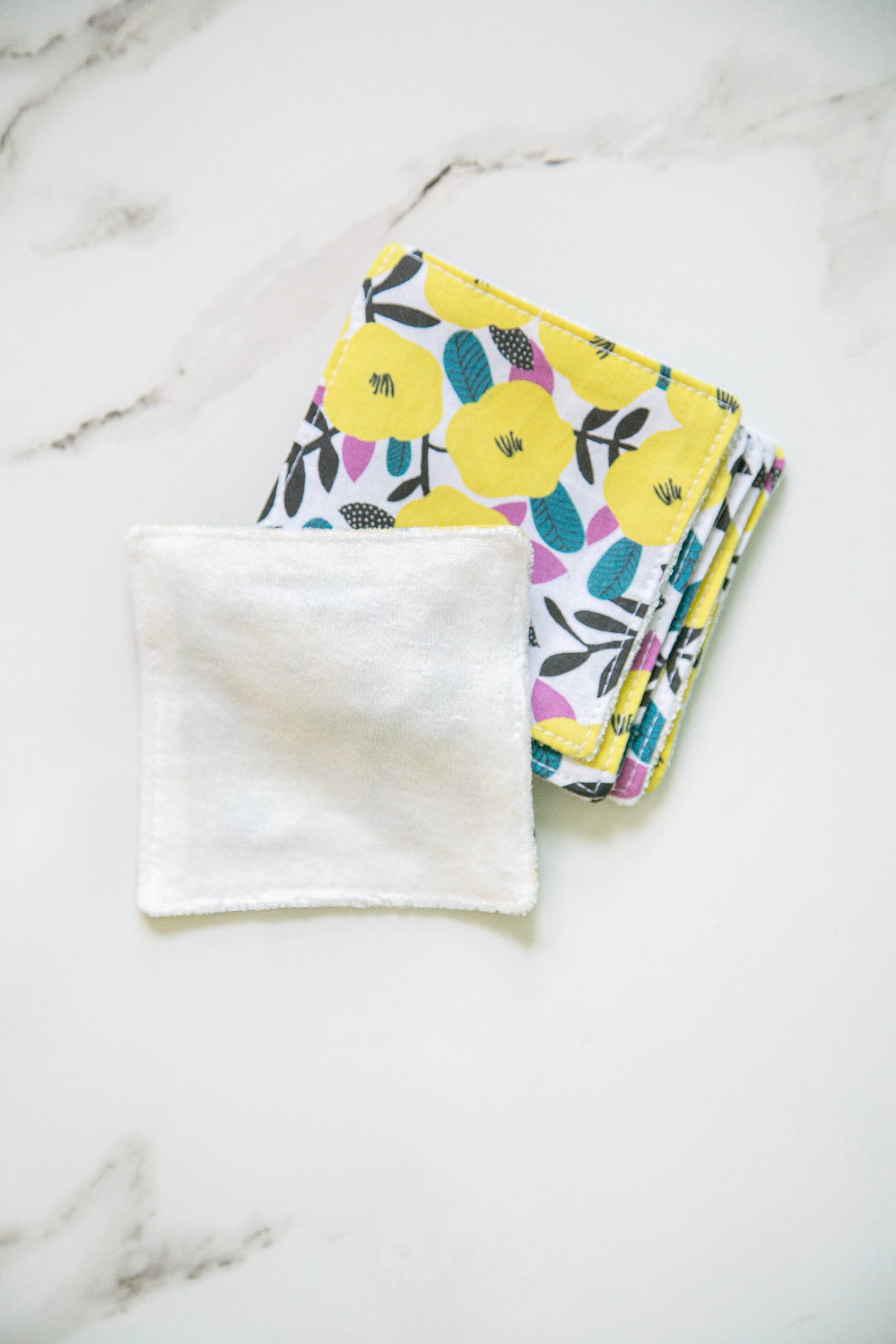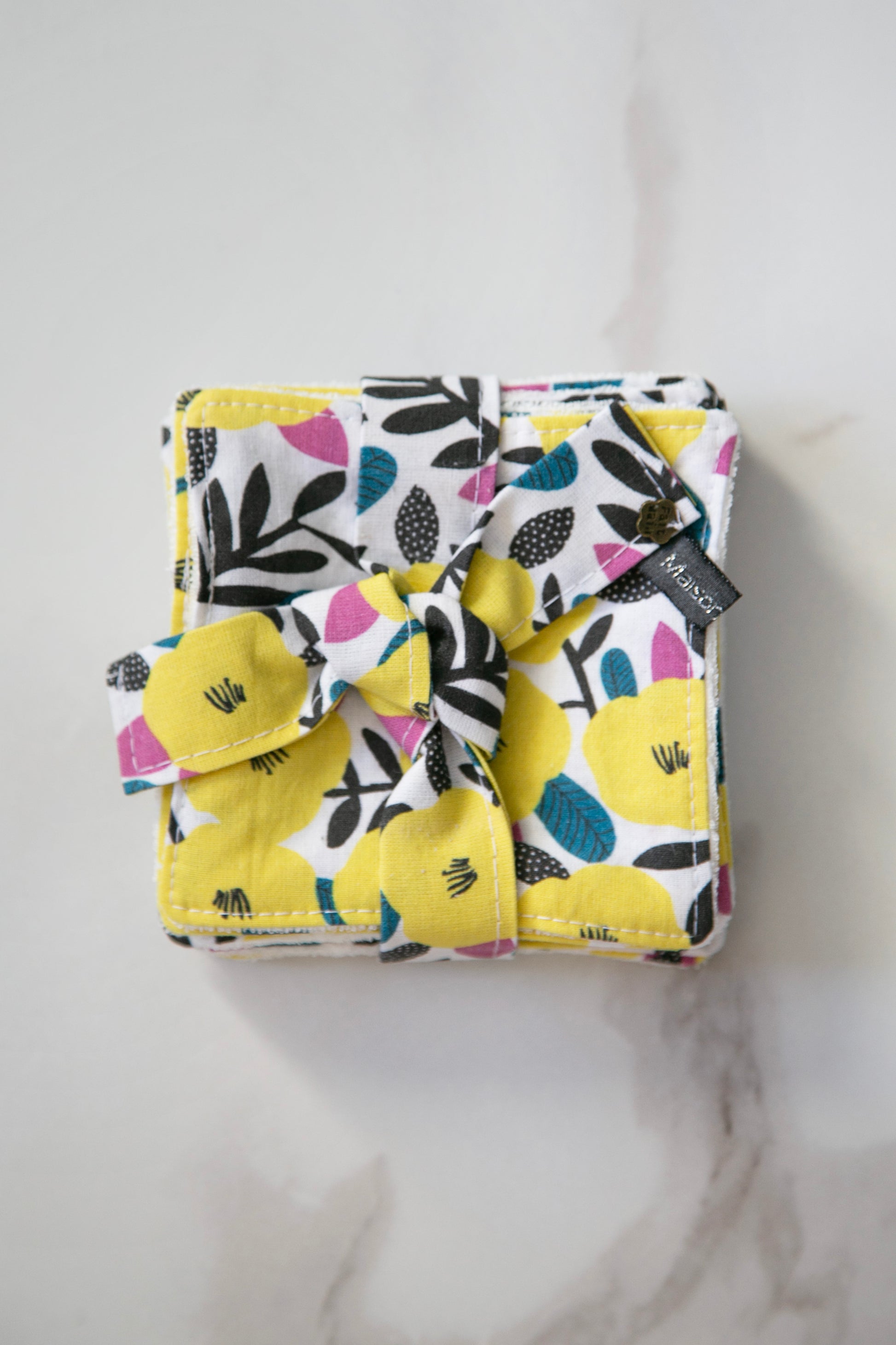 Carrés démaquillants eucalyptus | Pensées jaunes x7