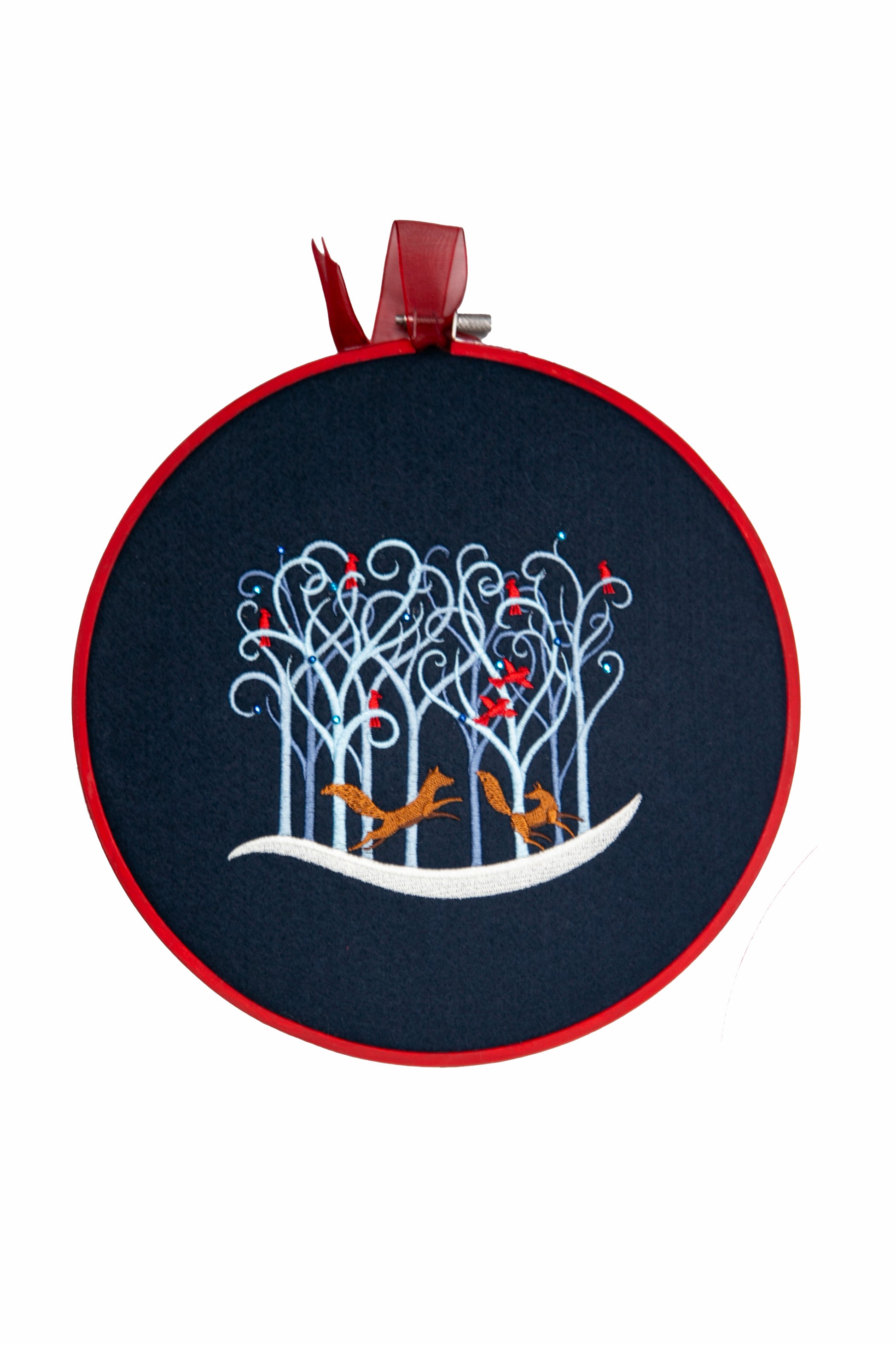 Décoration murale | Cercle brodé - Renards