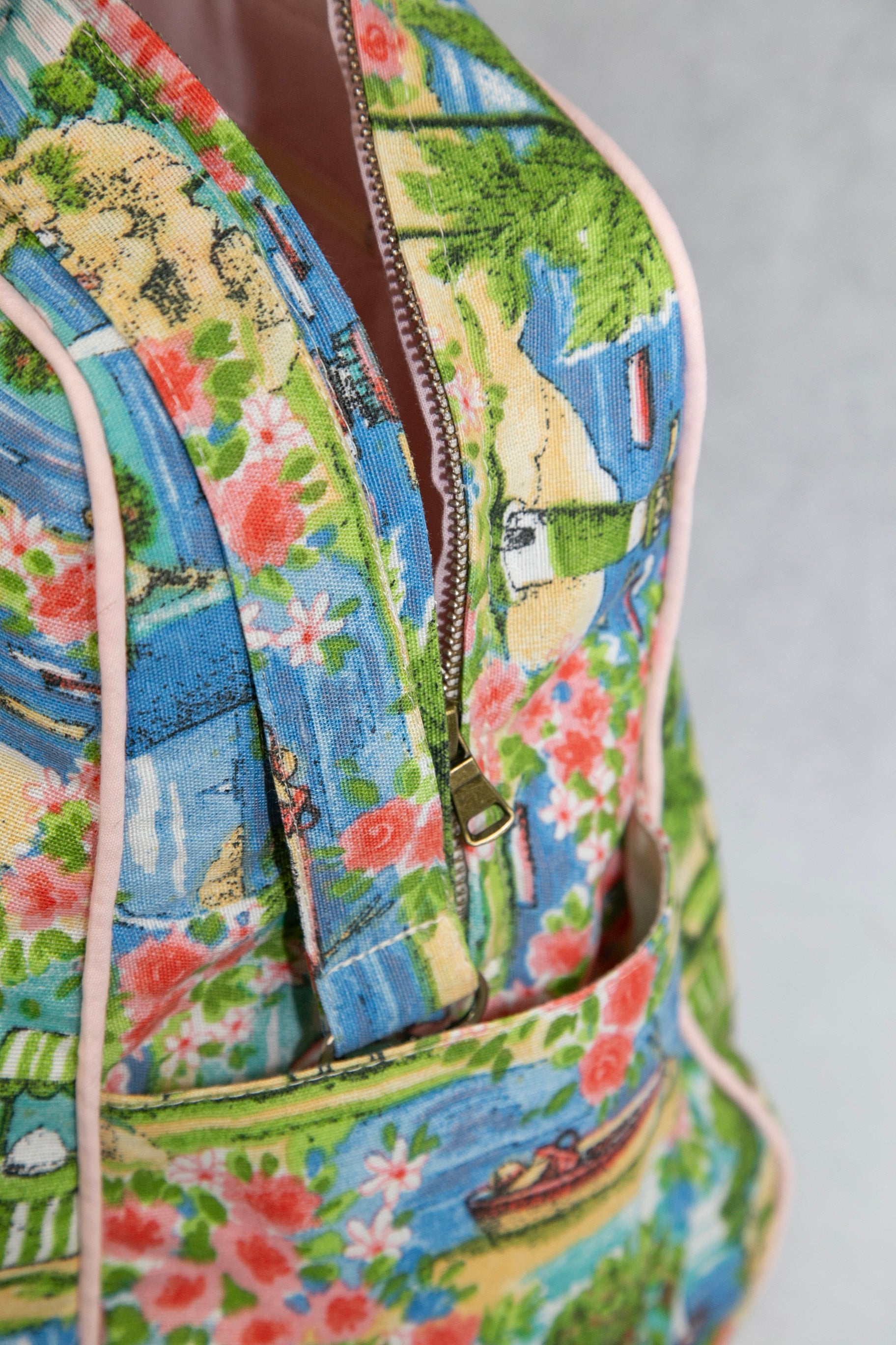 Sac confectionné avec du tissus épais et un entoilage rigide pour un bon maintien. Le tissu extérieur et la doublure intérieure font l'objet d'une attention particulière. Les motifs et textures variés créés une combinaison harmonieuse, originale et unique.