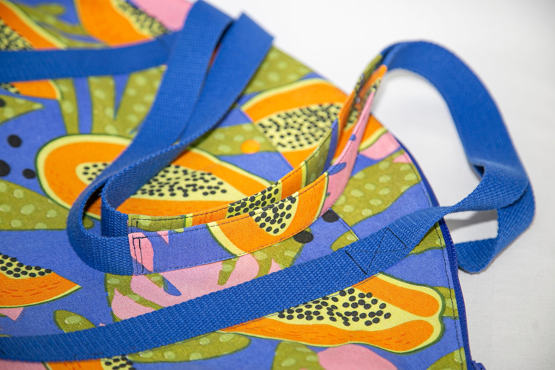 Sac confectionné avec du tissus épais et un entoilage rigide pour un bon maintien. Le tissu extérieur et la doublure intérieure font l'objet d'une attention particulière. Les motifs et textures variés créés une combinaison harmonieuse, originale et unique.